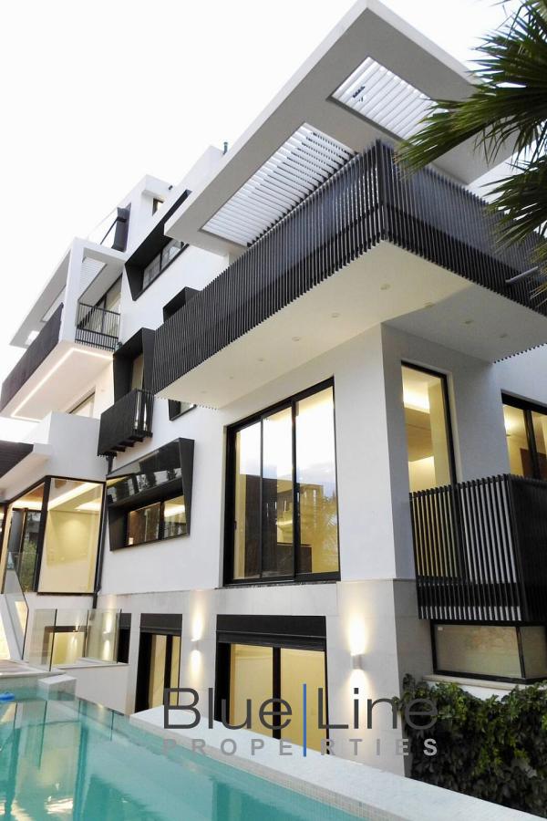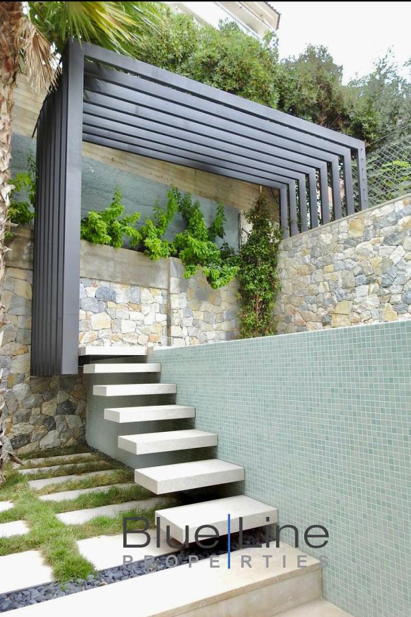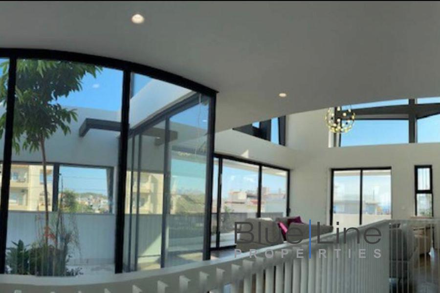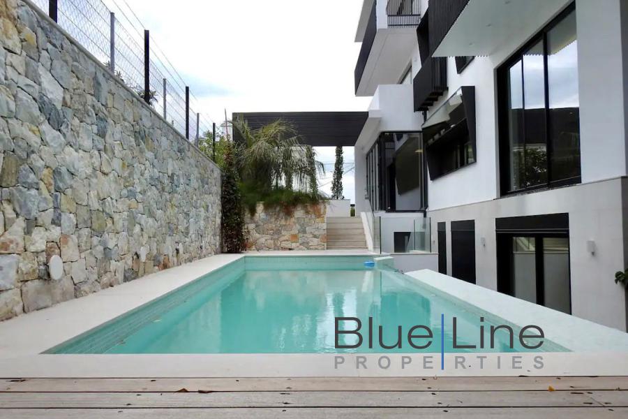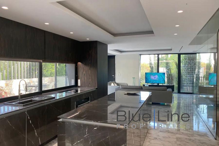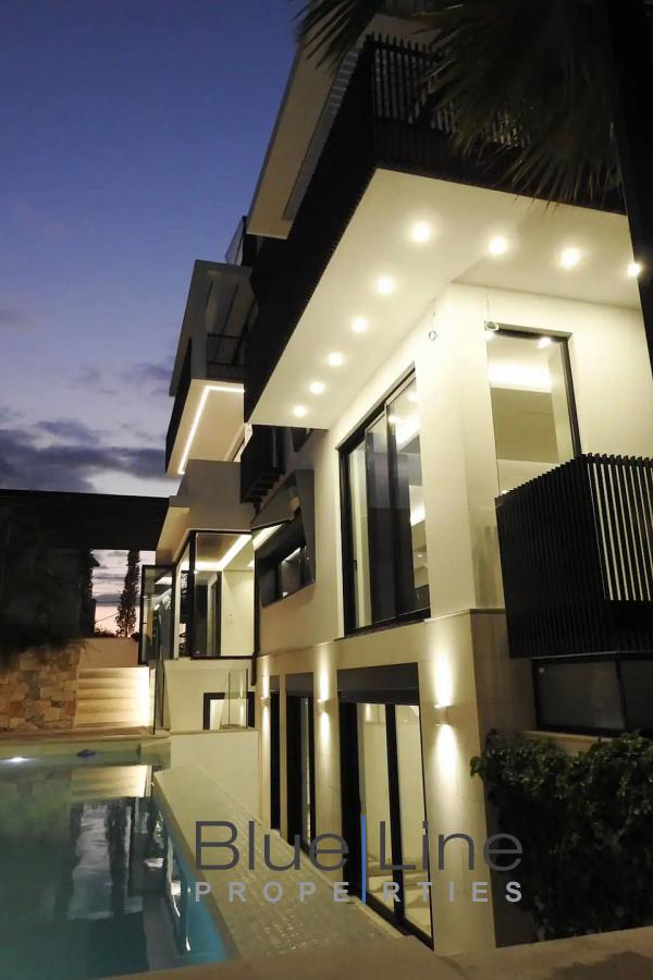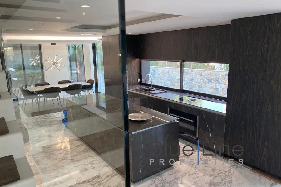 It consists of 5 bedrooms, living room, kitchen, 5 bathrooms and WC. It was built in 2021 with energy class A+ and has underfloor heating - natural gas, unlimited views, aluminum frames, marble floors, armored door, built-in wardrobes, elevator, parking, garden, swimming pool, A/C, alarm, electrical appliances, double glazing, entrance stairs, opening, internal staircase.